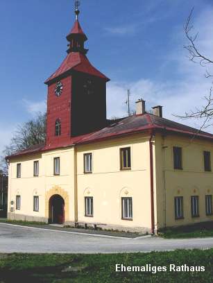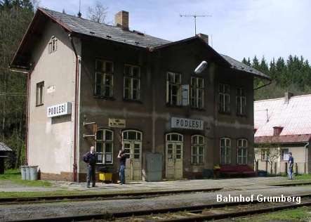 Der Ringplatz in Grulich ist wie früher erhalten, auch der Bogengang auf einer Seite des Platzes und die Häuser am Ringplatz sind bis auf wenige Ausnahmen renoviert. Nach einem Mittagessen in einem Gasthaus fuhren wir dann weiter Richtung Hannsdorf. Je näher wir Klein-Mohrau kamen, desto bekannter kam mir die Gegend vor. So fuhren wir zur Bahnstation Klein-Mohrau, die jetzt die Aufschrift "Podlesi" trägt. Das Bahnhofsgebäude wird noch genutzt und die Fahrplananzeige lässt erkennen, dass die Bahnstrecke für regelmäßigen Bahnverkehr genutzt wird. Das Bahnhofsgebäude war allerdings verschlossen und an der Tür war ein Hinweis, dass Fahrkarten im Zug verkauft werden. Wir fuhren weiter bis zum Sägewerk, wo die Straße nach Grumberg abzweigt. Das Sägewerk ist heute noch in Betrieb und ich habe mich an die drei Wochen im Juni 1946 erinnert, an denen ich vor der Ausweisung dort arbeiten musste. Wir fuhren weiter Richtung Grumberg und die Spannung wuchs, was ich wohl dort vorfinden würde, nachdem ich ja das letzte Mal 1946 in Grumberg war. Wir erreichten das auch früher erste Haus an der Straße, an der damals auch das Ortsschild von Grumberg befestigt war, die alte Flachsmühle. Sie wird zur Zeit abgebrochen und die Mauern stehen nur noch zur Hälfte. Dann suchte mein Blick den Mühlteich und die Mühle, aber leider vergeblich. Vom Mühlteich, in dem wir im Sommer trotz niedriger Wassertemperaturen (10 – 12° C) gebadet haben und der bis 3 m tief war, ist nur noch eine leichte, mit Gras bewachsene Mulde zu erkennen und die Gebäude der Mühle sind nicht mehr vorhanden. Der erste Blick auf die Häuser ließ bereits am Ortseingang erkennen, dass viele Häuser abgerissen worden sind und ganze Häuserreihen nicht mehr existieren. Das gilt zum Beispiel für das ganze Hinterstadtel und die Kirchgasse, in der links und rechts der Straße keine Häuser mehr vorhanden sind. Stattdessen sind an anderen Stellen neue Häuser erbaut worden, zweigeschossige Billigbauten aus Betonfertigsteilen, zum Beispiel auf der ehemaligen Brandstätte. Auch am Ringplatz sind die meisten Häuser abgerissen und nur wenige erhalten geblieben. Zu den noch vorhandenen und wieder hergerichteten Häusern, die auch noch bewohnt sind gehört das Haus von Göttlichers und Benders, wie auch das ehemalige Rathaus. Vor dem Rathaus ist die gesamte Fläche mit einer Teerdecke versehen worden, die frühere Wiese dort mit dem großen Baum und der Bank an der Straße ist weg. Es scheint so zu sein, dass die Tschechen die am besten erhaltenen Häuser, soweit sie für die geringe Zahl von tschechischen Einwohnern benötigt wurden, wieder hergerichtet und alle anderen Häuser abgerissen haben. Dadurch ist aber das geschlossene Bild, das der Ringplatz früher geboten hat, verloren gegangen. In den früher vom Ringplatz wegführenden Straßen stehen jeweils nur einige wenige Häuser, so dass auch die frühere Struktur der Straßen und Wege nicht mehr existiert. Die Mariensäule ist noch zu sehen, ebenso das Kriegerdenkmal, aber beides ungepflegt und in erbärmlichem Zustand. Der Park, der früher das Schmuckstück des Fremdenverkehrsortes und der Sommerfrische Grumberg war, ist völlig verwahrlost und verfallen. Der frühere Zaun ist weg, die Wege sind nicht mehr zu erkennen und vom Springbrunnen, der uns im Sommer als Bad gedient hat, ist nur noch der Betonrand vorhanden. Alle Sträucher und großen Bäume sind weg, auch die große Fichte am unteren Ende des Parks, auf die wir als Jungen so gerne hinaufgeklettert sind.