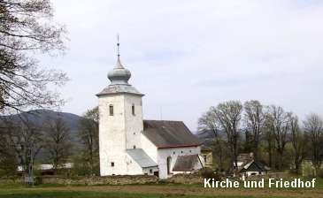 Der Weg führte uns weiter die Kirchgasse hinauf zum Friedhof, auf dem mein Vater Anfang September 1938 beerdigt wurde und wir suchten sein Grab. Der Grabstein war nicht mehr vorhanden, kleine Reste des Marmorsteins, an den ich mich noch erinnere, habe ich aber gefunden, so dass ich sicher war, das Grab gefunden zu haben. Es sind nur noch wenige Gräber der früheren deutschen Bewohner Grumbergs erhalten. In der Nähe des Eingangs zum Friedhof sind neue Gräber der jetzigen tschechischen Einwohner angelegt, aber es sind noch nicht sehr viele. Die Friedhofsmauer ist an mehreren Stellen eingestürzt. Die Kirche war verschlossen, nicht nur durch die alte Holztür, sondern auch durch eine abgeschlossene zusätzliche Eisen-Gittertür. Man hat den Eindruck, dass die Kirche nicht genutzt wird. Wir dachten, wir könnten im Pfarrhaus den Schlüssel zur Kirche erhalten, aber dort war niemand aufzutreiben. Das frühere Pfarrgebäude wird als Gemeindeverwaltung benutzt, wie man aus Anschlägen an der Tür ersehen konnte. Das gegenüber der Kirche noch bestehende alte Schulgebäude existiert noch, macht aber einen verfallenen Eindruck und wird sicher nicht als Schule genutzt.